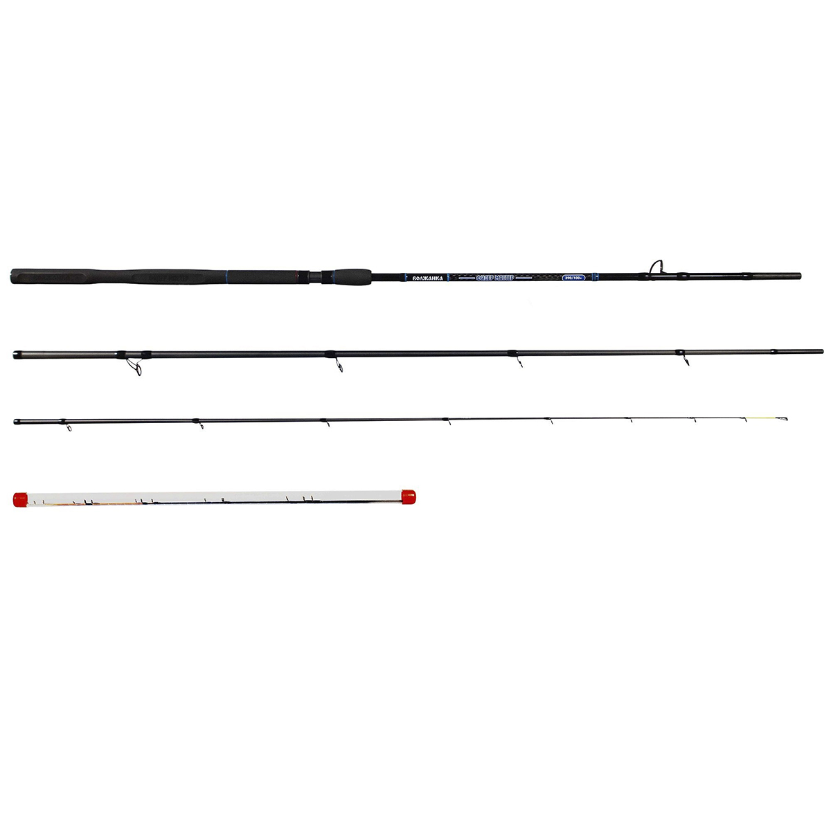 Модель рассчитана на работу с крупными кормушками и уверенные забросы на дальние дистанции. Штекерная конструкция из трех колен с тремя сменными вершинами позволяет тонко подстраивать чувствительность под вес оснастки и условия ловли