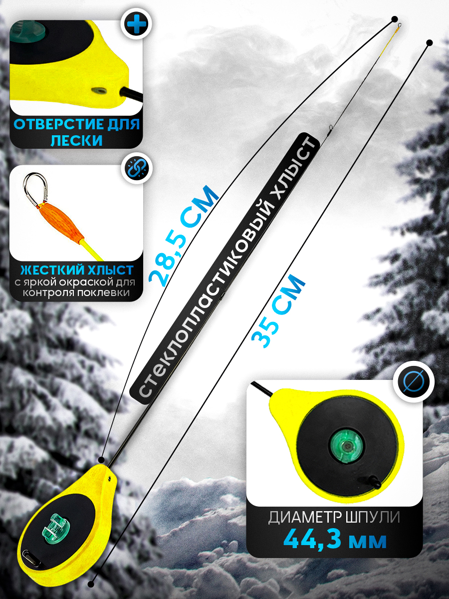 Удочка зимняя безкивковая Akara Finezza UL балалайка, с кольцами 35см тест 0,7-2,8гр, хлыст стеклопластик, желтая