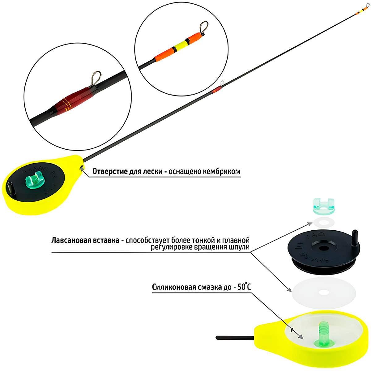 Удочка зимняя Akara Ice Pro 355 SP-1C-Y балалайка, хлыст углепластик, желтая тест 1-8гр