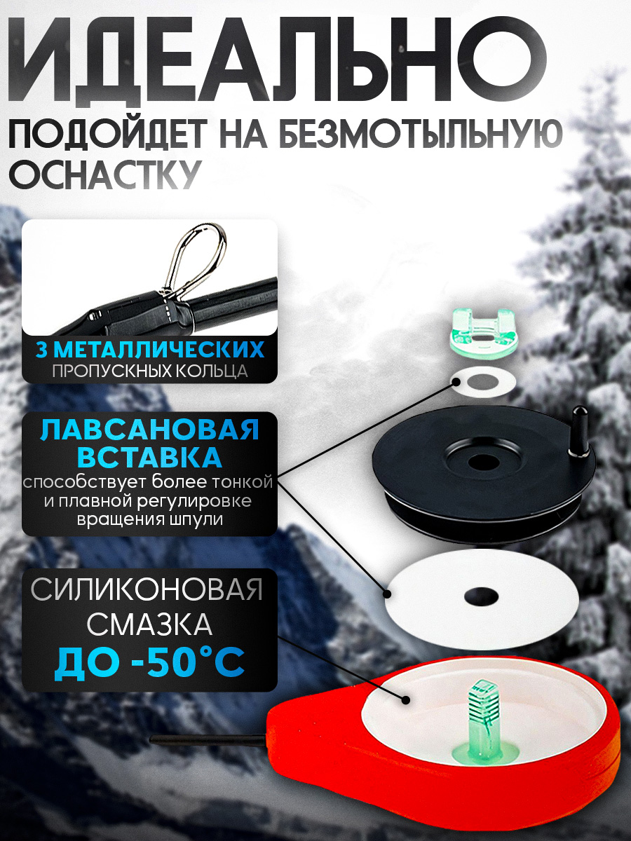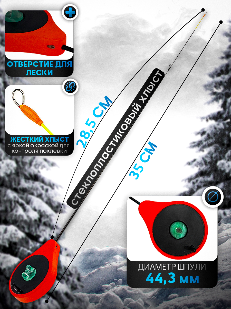 Удочка зимняя безкивковая Akara Finezza UL балалайка, с кольцами 35см тест 0,7-2,8гр, хлыст стеклопластик, красная
