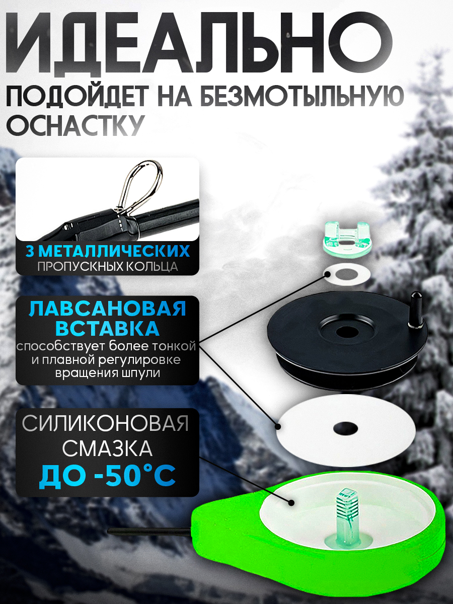 Удочка зимняя безкивковая Akara Finezza UL балалайка, с кольцами 35см тест 0,7-2,8гр, хлыст стеклопластик, зеленая
