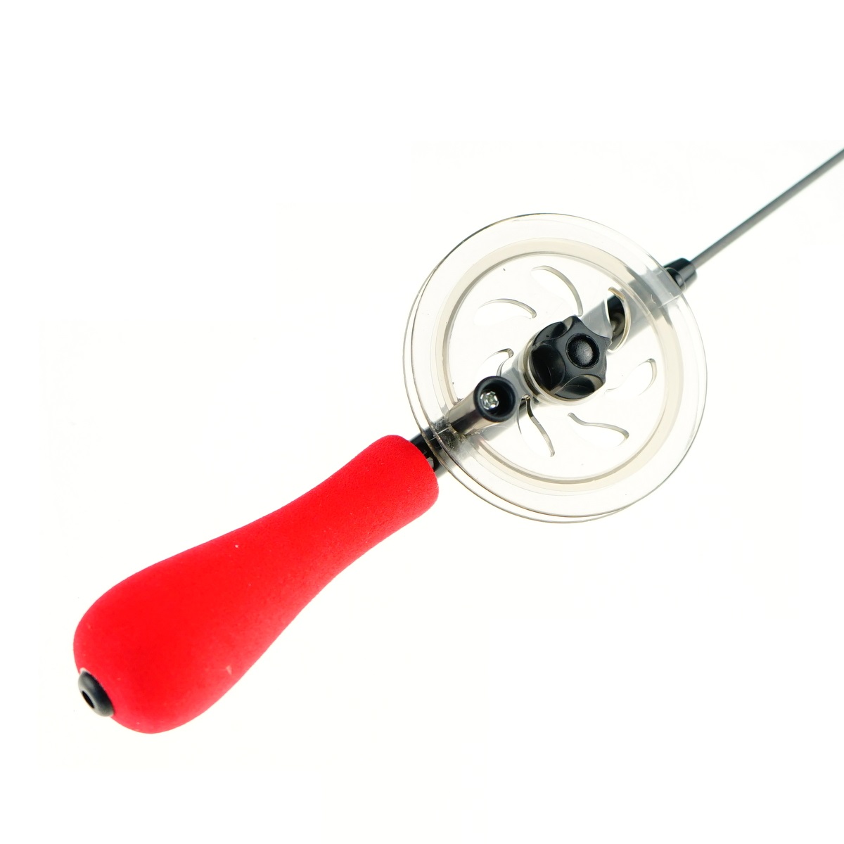 Шпуля выполнена из точеного монолитного поликарбоната. Ручка удочки выполнена из EVA материала, приятная на ощупь и достаточно теплая в минусовые температуры. Шестик состоит из высокомодульного карбона что дает полное ощущение и информативность поклевки.