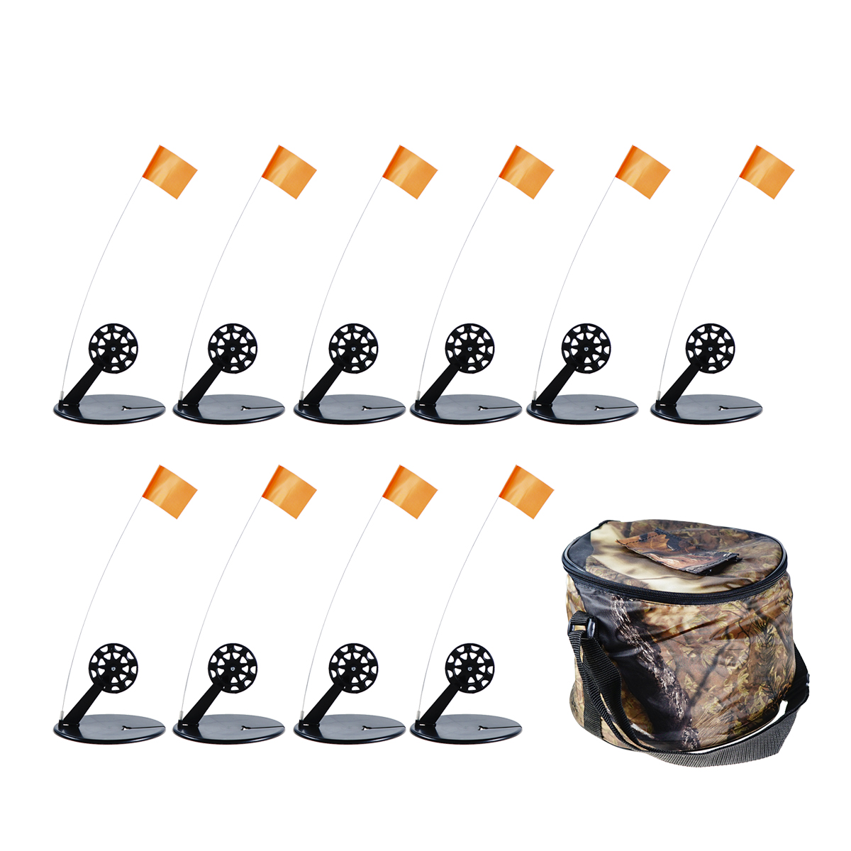 Комплект жерлиц в сумке с угловой стойкой, черные катушки 85мм (10шт)