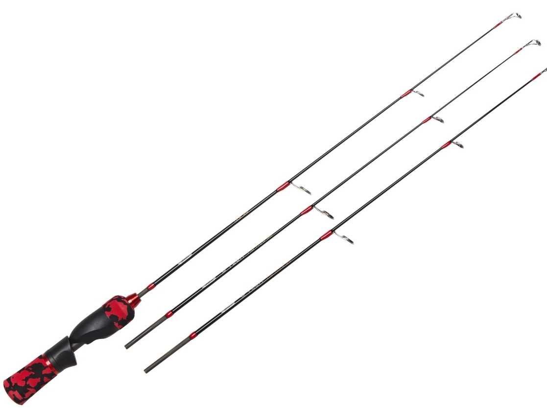 Модель создана для работы с вибами, блёснами и балансирами: три сменных хлыста разной жёсткости позволяют быстро подобрать тест под приманку и условия лова — от лёгких окунёвых до более тяжёлых для судака и щуки. Такой подход экономит время на льду и расширяет рабочий диапазон без смены удилища
