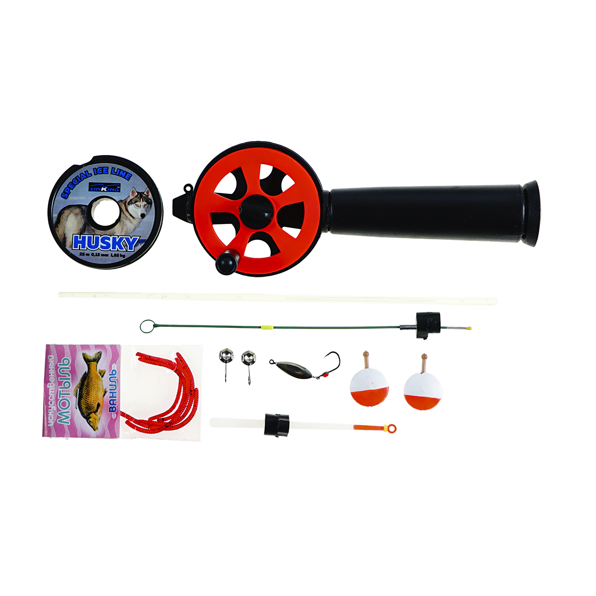 Комплект уровня «люкс» собран так, чтобы без дооснащения закрыть три сценария зимней ловли: мормышка, поплавок и блеснение. В коробке сразу две разные чувствительные вершинки — лавсановый «финский» и «часовая пружина», а также блесна, поплавки, мормышки и леска 25 м с разрывной нагрузкой 3,20 кг — можно подобрать оснастку под активность рыбы и глубину. Жёсткий «Техно 55» с шестиком даёт чёткую передачу поклёвки и удобство игры приманкой.