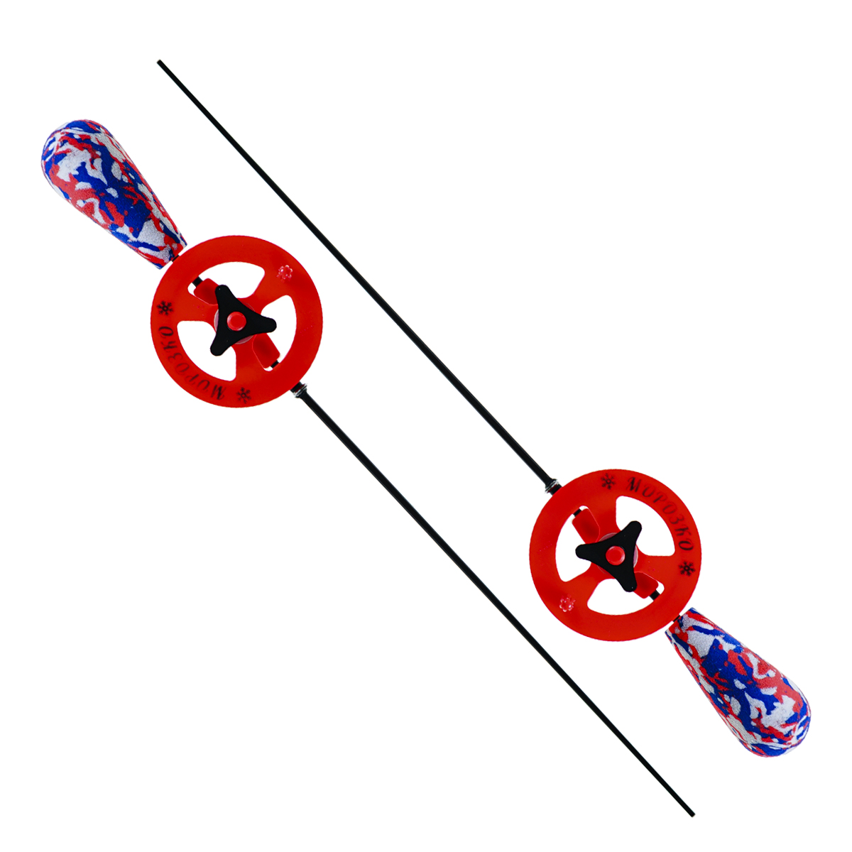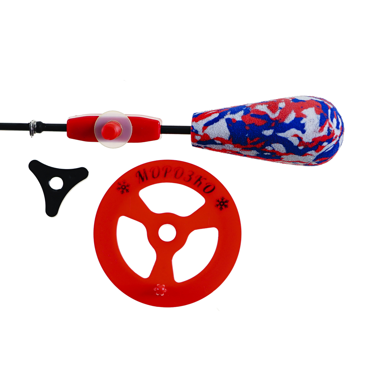 Удочки зимние Морозко 30см ручка ЭВА капелька, катушка 55мм, ручка-КМФ красная, катушка-красная, основание-красное (2шт)