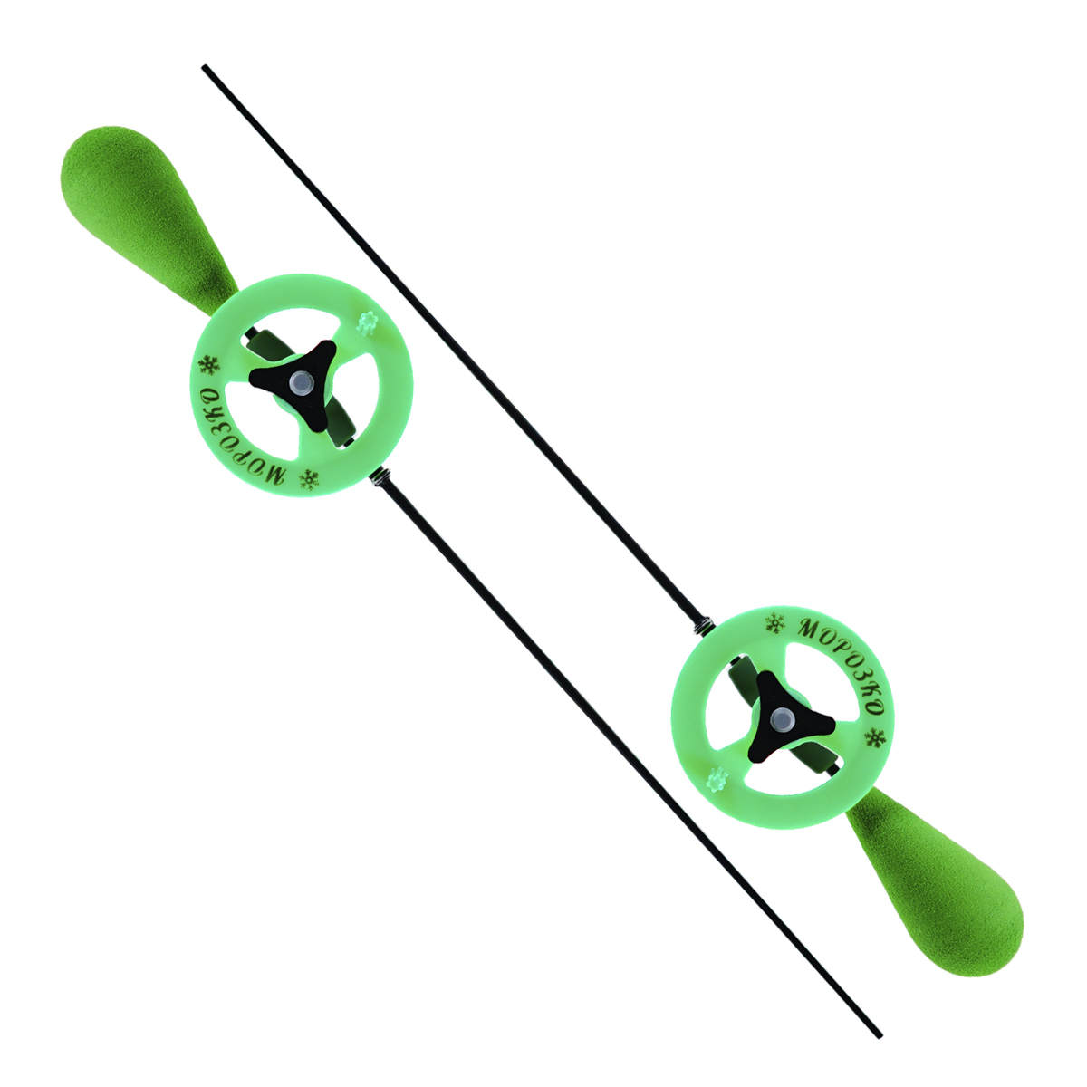 Удочки зимние Морозко 30см ручка ЭВА капелька, катушка 55мм, ручка-зеленая, катушка-зеленая, основание-серое (2шт)