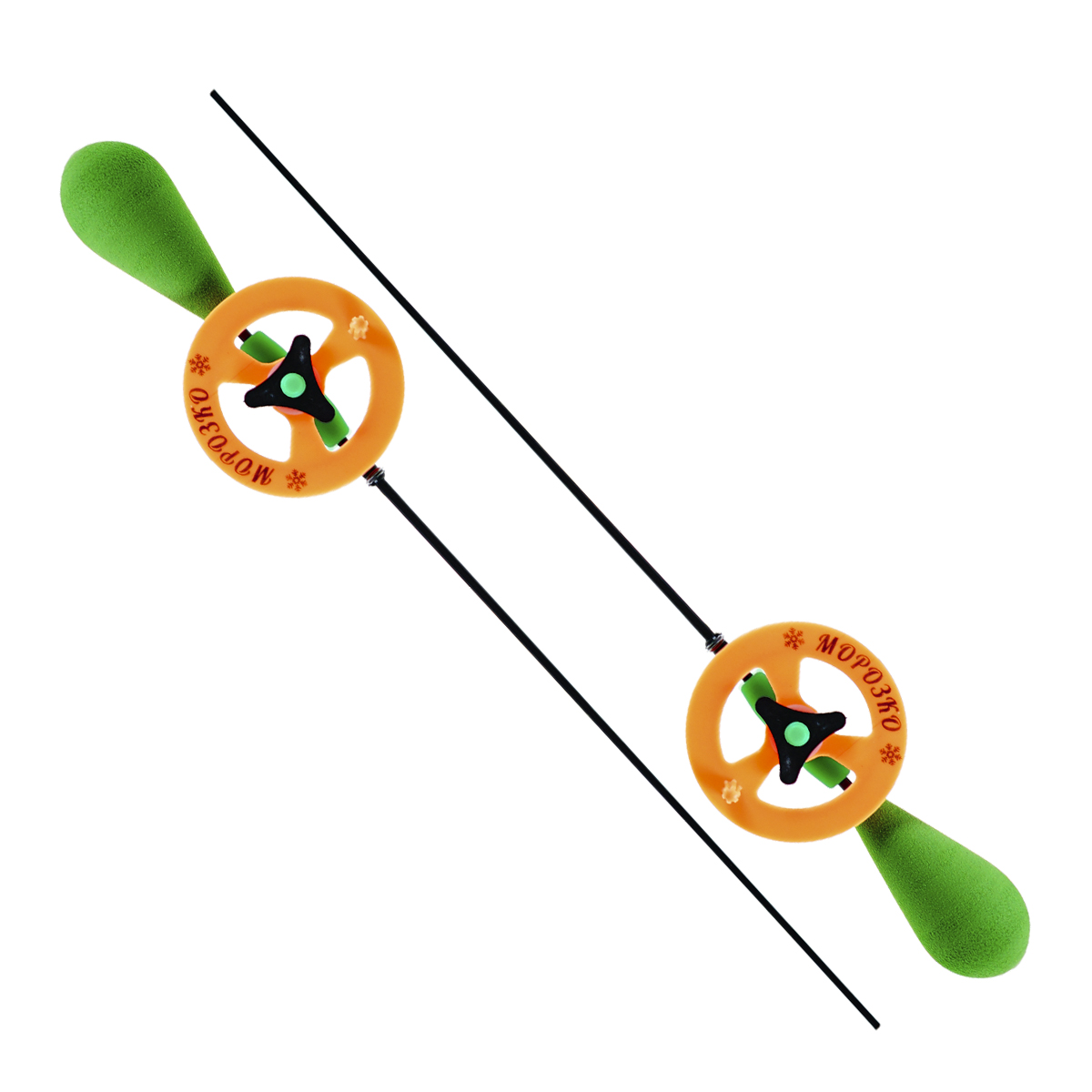 Удочки зимние Морозко 30см ручка ЭВА капелька, катушка 55мм, ручка-зеленая, катушка-оранжевая, основание-зеленое (2шт)