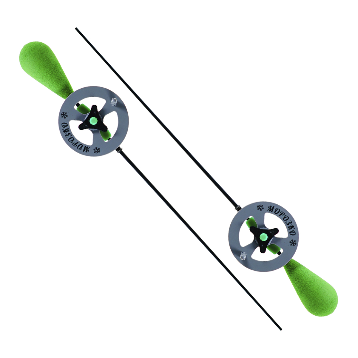 Удочки зимние Морозко 30см ручка ЭВА капелька, катушка 55мм, ручка-зеленая, катушка-серая, основание-зеленое (2шт)