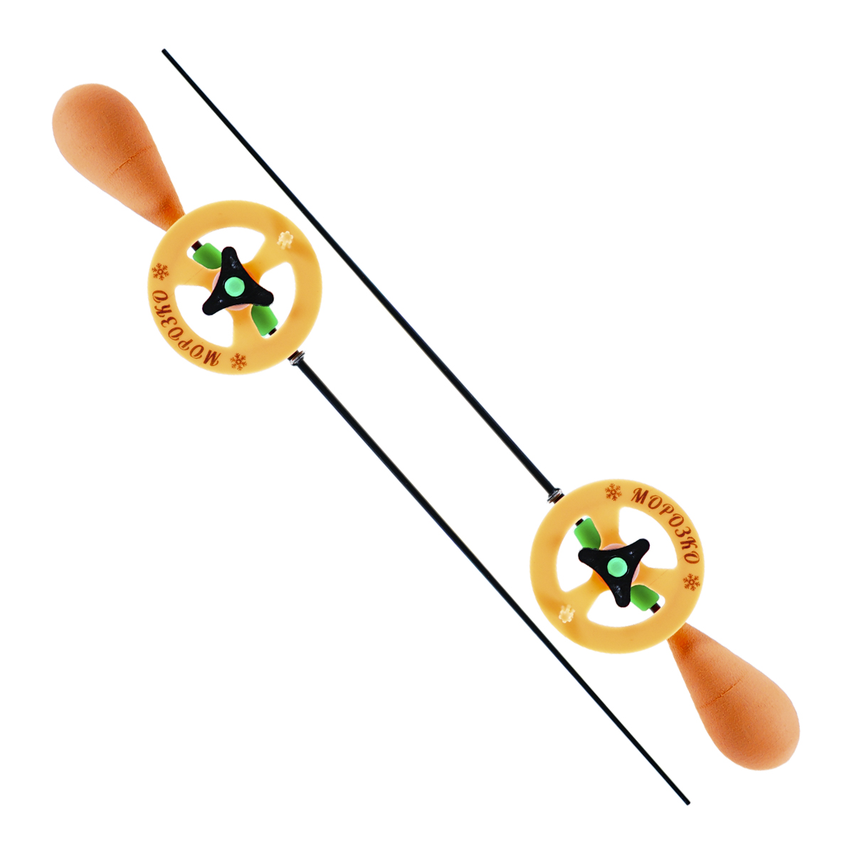Удочки зимние Морозко 30см ручка ЭВА капелька, катушка 55мм, ручка-оранжевая, катушка-оранжевая, основание-зеленое (2шт)