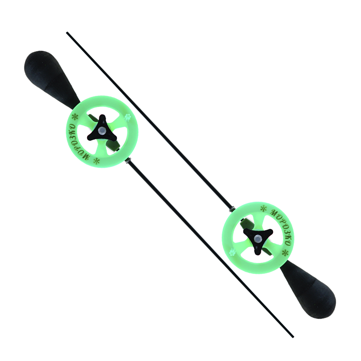 Удочки зимние Морозко 30см ручка ЭВА капелька, катушка 55мм, ручка-черная, катушка-зеленая, основание-серое (2шт)