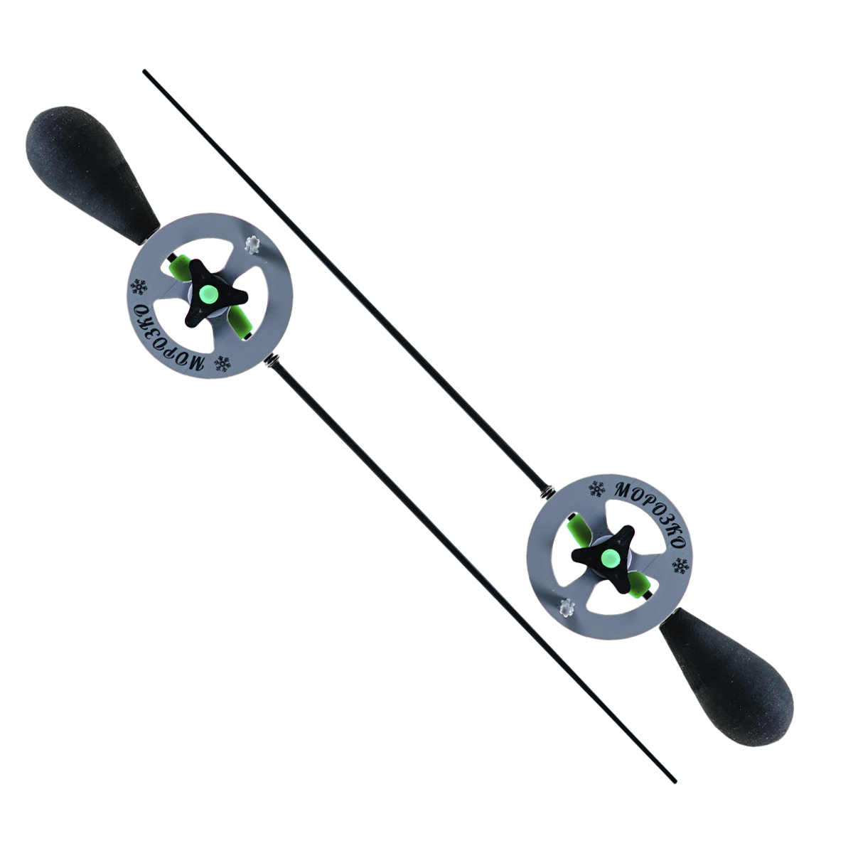 Удочки зимние Морозко 30см ручка ЭВА капелька, катушка 55мм, ручка-черная, катушка-серая, основание-зеленое (2шт)