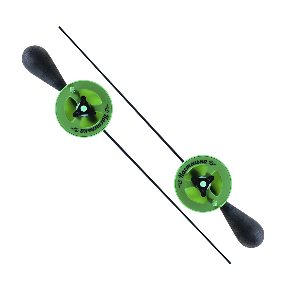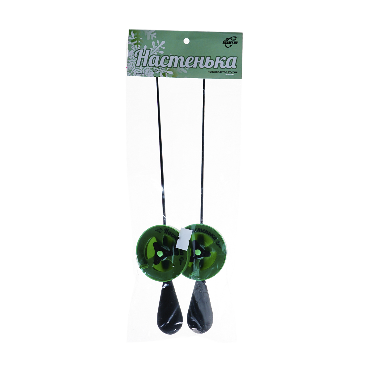 Удочки зимние Настенька 30см ручка ЭВА капелька, катушка 60мм, ручка-черная, катушка-зеленая, основание-зеленое (2шт)