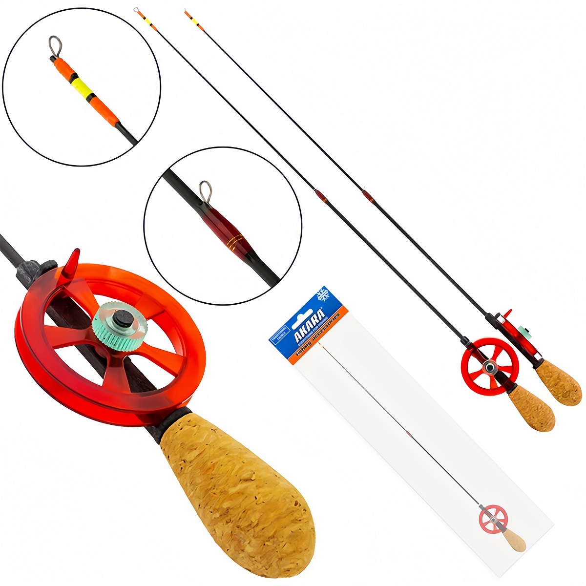 Удочка зимняя Akara Leader F 415 с катушкой, хлыст carbon, красная